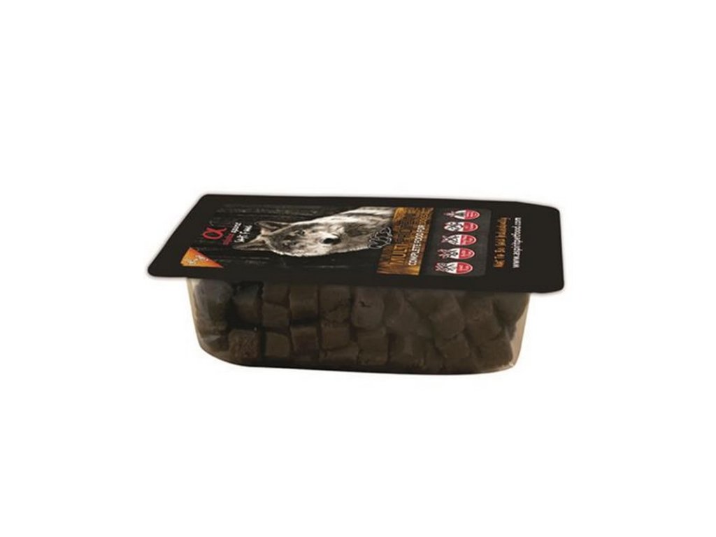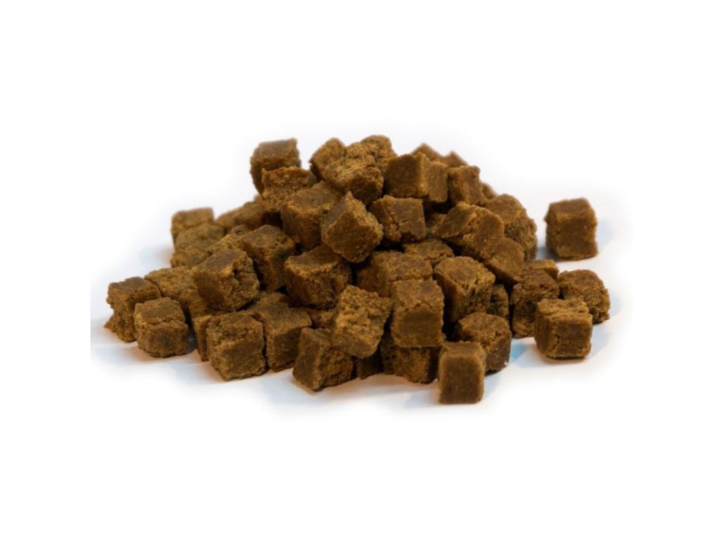 Unikátne za studena lisované mäkké krmivo pre všetky plemená psov od 1. roku života. Kompletné polovlhké krmivo je vďaka svojej mäkkej textúre vhodné aj pre male plemená psov, a to aj pre starších s problematickým chrupom. Na výrobu 1kg granúl bolo použitých 2,5kg čerstvého mäsa a rýb. Neobsahuje žiadne obilniny/lepok/múčky/farbivá/konzervanty/dochucovadlá.