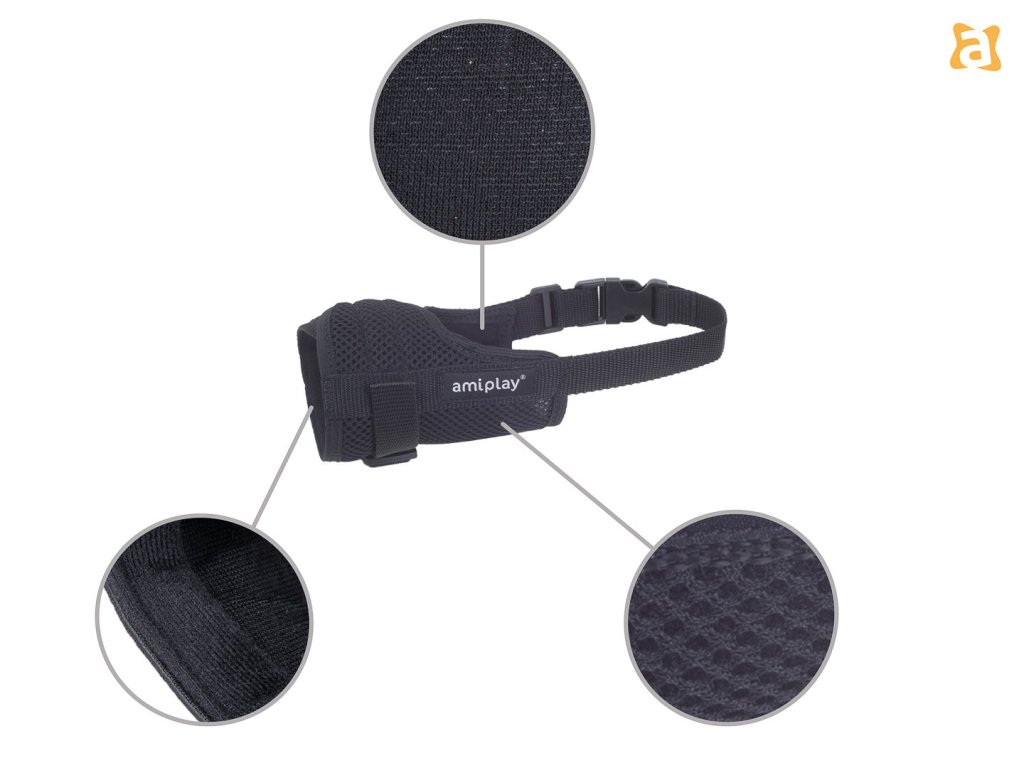 Vzdušný textilný náhubok je skvelým riešením na krátke cesty v mestskej hromadnej doprave alebo na návštevu veterinára. Má veľký rozsah nastavenia, vďaka ktorému sa ľahko prispôsobí. Mal by sa nosiť tak, aby pes mohol voľne otvárať tlamu.