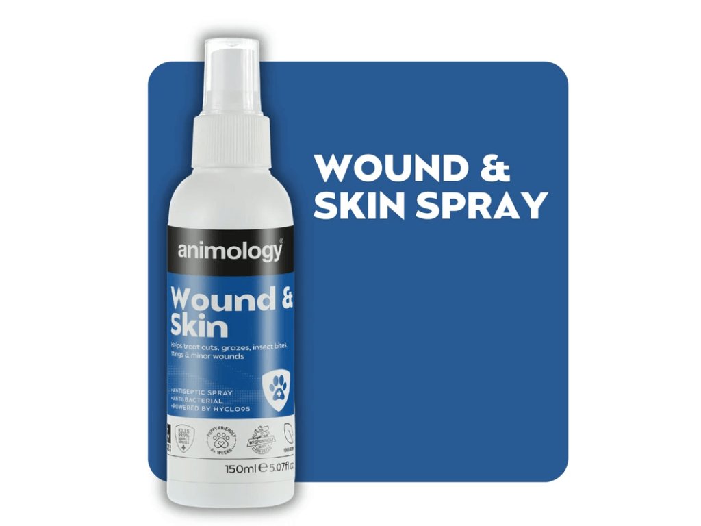 Animology Wound & Skin Spray je ideálnym riešením pre porezania, odreniny a uštipnutia alebo bodnutia hmyzom vášho psieho spoločníka. Tento sprej s obsahom Hyclo95 určený na starostlivosť o pokožku a menšie rany pomáha poskytnúť úľavu a skrátiť čas hojenia.