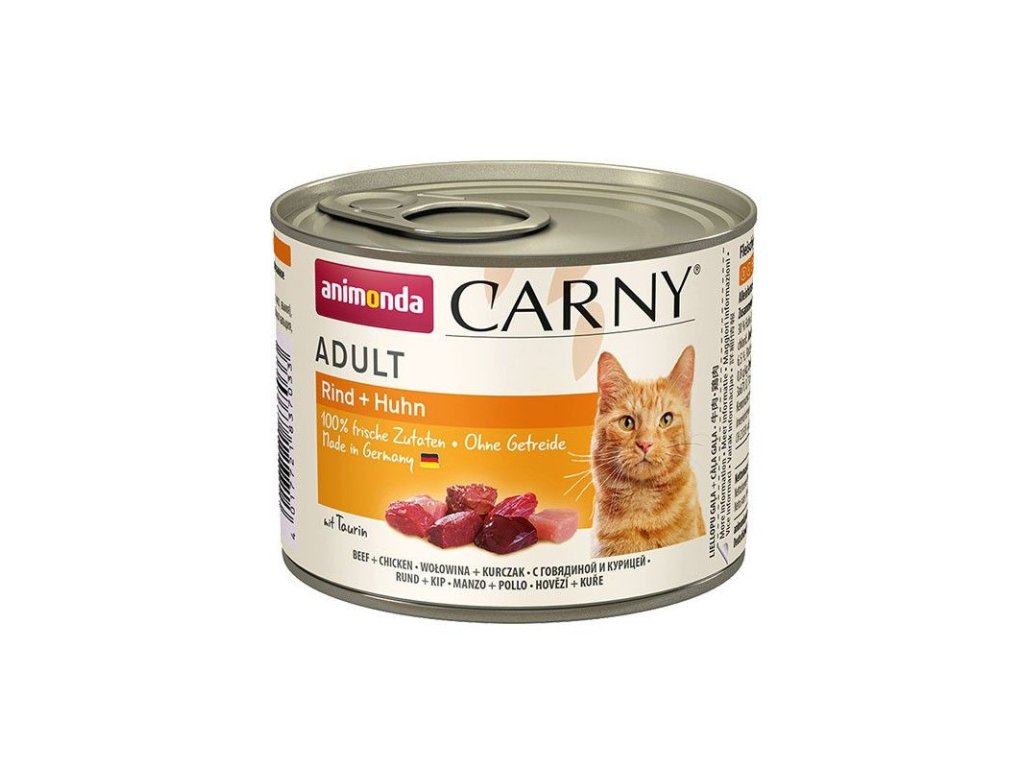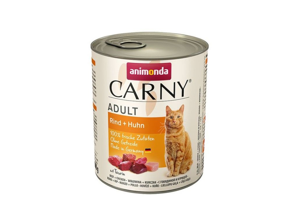 Animonda Carny Adult - Kuracie a losos je konzerva vyrobená len z čerstvých mäsových častí, ktoré sú tým pravým pre Vašu dospelú mačku. - veľkosť a tvar...