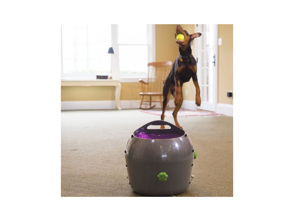 Vodeodolný vrhač je ideálny ako pre vnútorné tak aj pre vonkajšie interaktívne hry. S nastavením 9 dĺžok dosahov a 6 možnosťami nastavení uhlov, spúšťač vyhodí tenisové loptičky štandardných rozmerov v 45 stupňových uhloch s dosahom 2,5-9 metrov. Vrhač má zabudované bezpečnostné senzory pre ochranu prítomných ľúdí a iných zvierat. Funguje na baterky typ D alebo na sieťový adaptér, ktorý je súčasťou balenia.