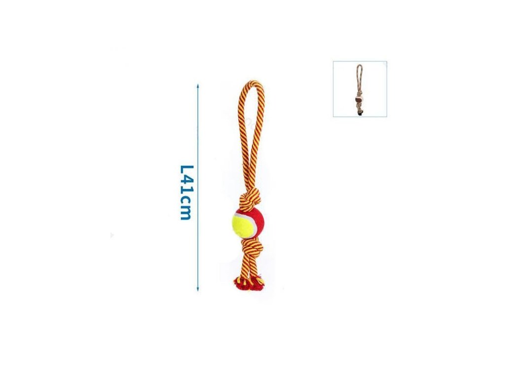 Bavlnené lano s uzlom a loptou - 40cm je hračka určená pre psa na aportovanie a naťahovanie. Naťahujte sa so svojím psom o túto hračku a zbavte tak psa...