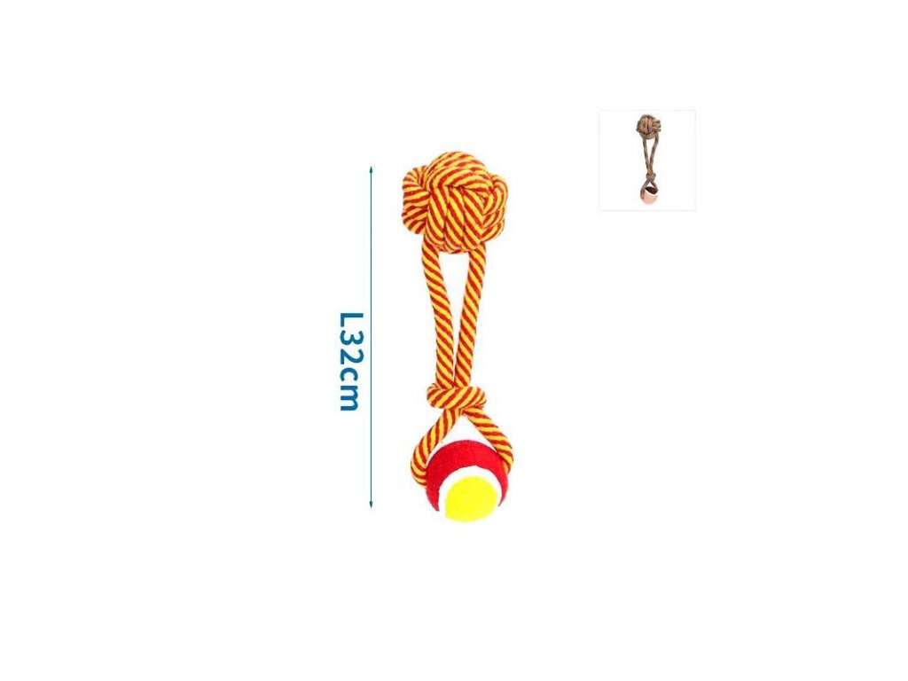 Bavlnené lano s loptou a rúčkou Nobleza 33cm - je hračka určená pre psa na aportovanie a naťahovanie. Naťahujte sa so svojím psom o túto hračku a zbavte tak...