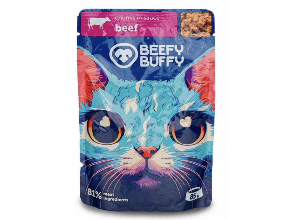 BEEFY BUFFY kapsičky pre mačky mäsové hovädzie kúsky v omáčke 85g (4662)