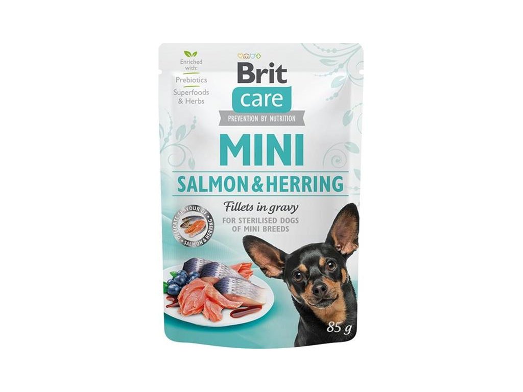 Brit Care dog Kapsička MINI Sterilised Salmon&Herring fillets in gravy 24 x 85 g