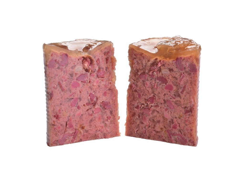 - celé kúsky mäsa a vnútornosí v lahodnej paté (paštéta)