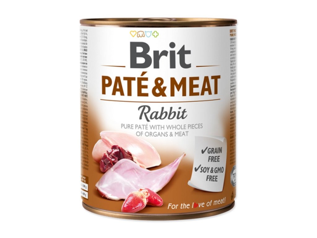 Brit Paté & Meat Rabbit je konzerva pre psov s vysokým podielom kvalitného mäsa. Vďaka šetrnému spracovaniu surovín má skvelú chuť a vôňu. Lahodná kombinácia mäsových kúskov a orgánového mäsa vo forme paté (paštéta) dokonale uspokojí aj tých najvyberavejších psích gurmánov a prispieva k dobrej stráviteľnosti. Konzerva je ideálnym doplnkom alebo spestrením ku granulám.