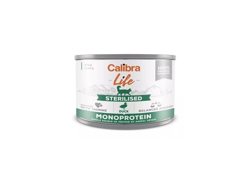 Calibra Cat Life Sterilised Duck – konzerva s kačacím, ktorá je určená pre dospelé mačky, vhodná pre sterilizované/kastrované mačky. Kompletné vlhké krmivo je energeticky vyvážené. Receptúra je monoproteínová a zostavená z limitovaného počtu ingrediencií. Zloženie bez obilnín a lepku má vplyv na ľahkú stráviteľnosť. Krmivo obsahuje len 100 % špecifikované suroviny tej najvyššej kvality.