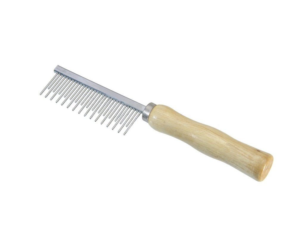 Hrebeň s hrubými kovovými zubami pre psov, mačky a kone. Efektívne znižuje pĺznutie, vhodný pre všetky druhy srsti. Bezpečné použitie.