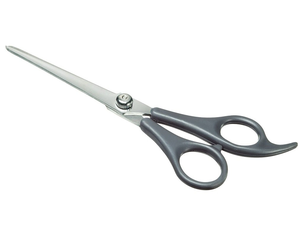Malé nožnice so zaoblenou špičkou, vhodné na strihanie srsti zvierat v oblasti labiek alebo tváre.