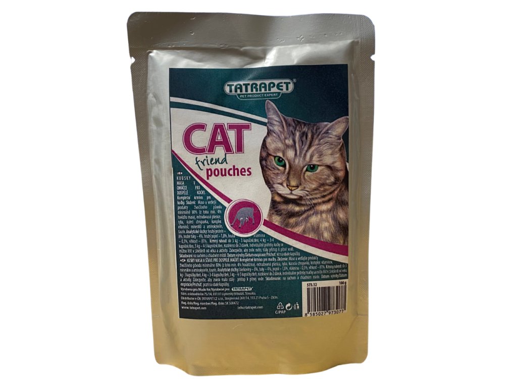 Kapsička CAT Friend je kompletné krmivo pre dospelé mačky. Balenie obsahuje kúsky mäsa v omáčke.