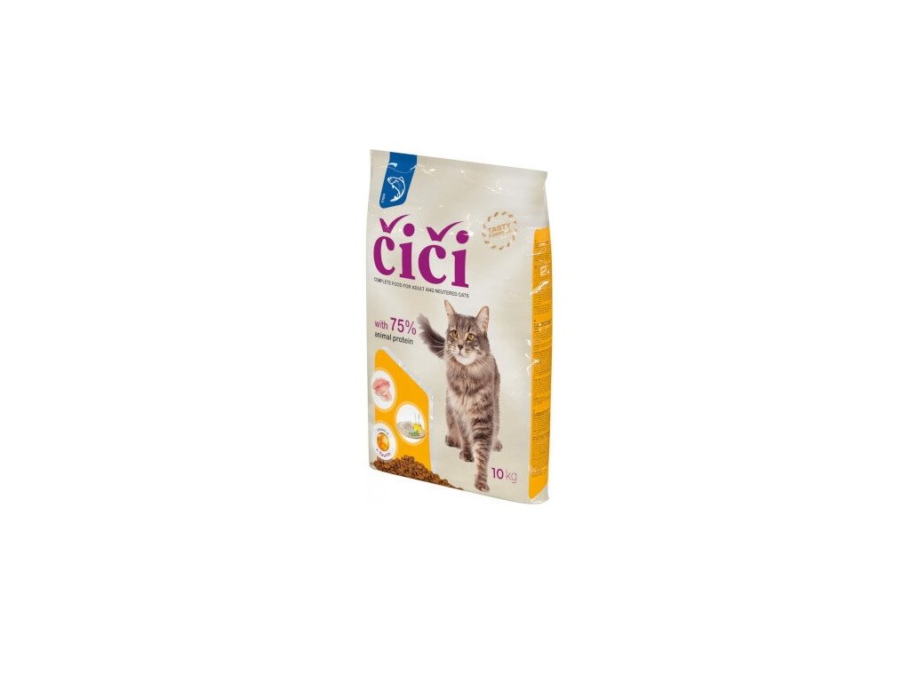 Čiči ryba je kompletné krmivo pre mačky s príchuťou ryby so 75% živočíšnych proteínov so všetkým, čo vaša mačka potrebuje. Granule Čiči sú vhodné aj pre kastrované mačky. Kompletné, chutné a chrumkavé granule Čiči ryba v tvare mačacích hlavičiek obsahujú všetko, čo vaša mačka potrebuje. Kuracie mäso a rybie mäso zaistí skvelú kondíciu mačky, kvalitný hydinový tuk a lososový olej dodá potrebnú energiu bez rizika naberania na váhe. Lososový olej má navyše veľmi pozitívny vplyv na imunitu zvieraťa, kvalitu srsti a má protizápalové účinky. Rastlinný olej zaistí pružnú srsť a ľahko stráviteľná ryža s kukuricou umožnia dobré trávenie. Vyvážené množstvo mikroprvkov a vitamínov v krmive Čiči ryba pomôže udržiavať dobré zdravie vašej mačky.
