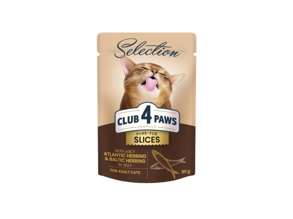 CLUB 4 PAWS Premium Plus kapsička s atlantickým sleďom a baltským sleďom v želé 80g (8025)