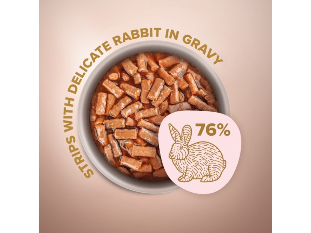 Kompletné mokré krmivo vo forme chutných pásikov s králikom v jemnej omáčke pre dospelé mačky. Poskytuje vášmu miláčikovi základné vitamíny, minerály a živiny. Pomáha udržiavať výborný stav kože a srsti, ako aj zlepšovať činnosť vnútorných orgánov mačky.