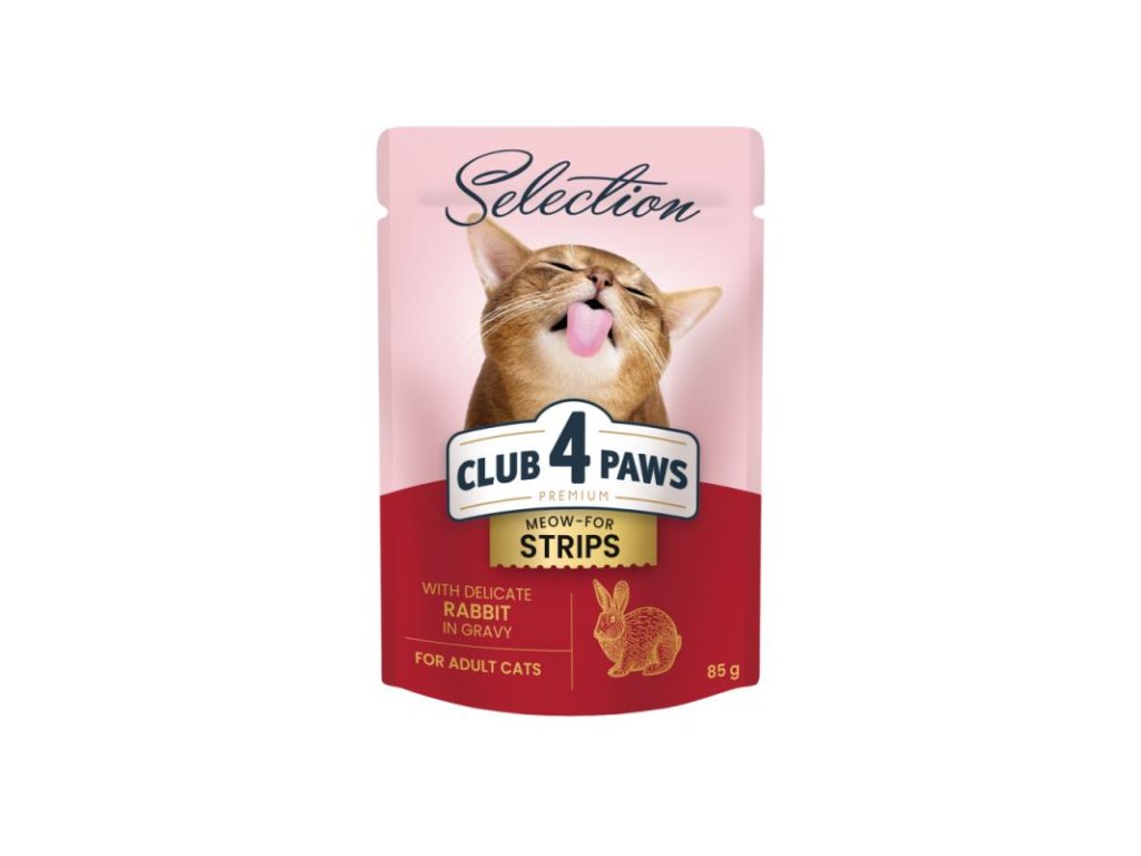CLUB 4 PAWS Premium Plus pre mačky prúžky s kralikom v omačke 85g (8087)