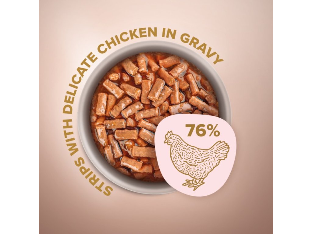 Je vyrobený z tých najkvalitnejších mäsových surovín, aby pes dostal dostatočné množstvo bielkovín, ktoré potrebuje. Každý šťavnatý kúsok obsahuje až 62 % mäsa a rýb