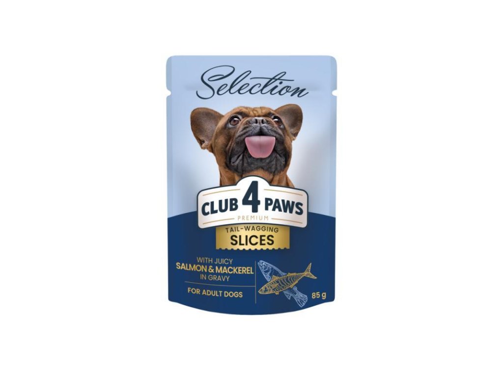 Club 4 Paws Premium Plus Selection kúsky s lososom a makrelou v omáčke pre dospelých psov 85g (8056)