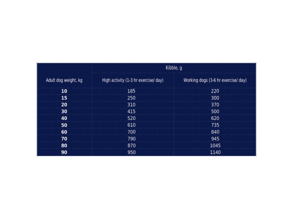 Energetická hodnota (kalorická hodnota) 100 g krmiva: 1 607 kJ (384 kcal). Skladovať v chladnom, suchom a nie slnečnom mieste. Krmivo je nutné zavádzať do stravovania postupne (aspoň počas prvých 5 dní). Zabezpečte zvierati stály prístup k čistej a sviežej vode. Individuálne normy krmenia môžu sa meniť v závislosti od veku, druhu, úrovni aktivity a prostredia pobytu zvieraťa. Odporúčané dávkovanie krmiva: je ukázaný v tabuľke kŕmenia. Dátum výroby, dátum použiť do, číslo partie, číslo schválenia prevádzky sú ukazané na balení.