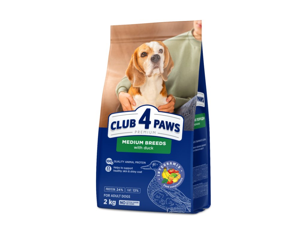 CLUB 4 PAWS Premium pre dospelých psov stredných plemien s kačacim mäsom 2 kg (4644)
