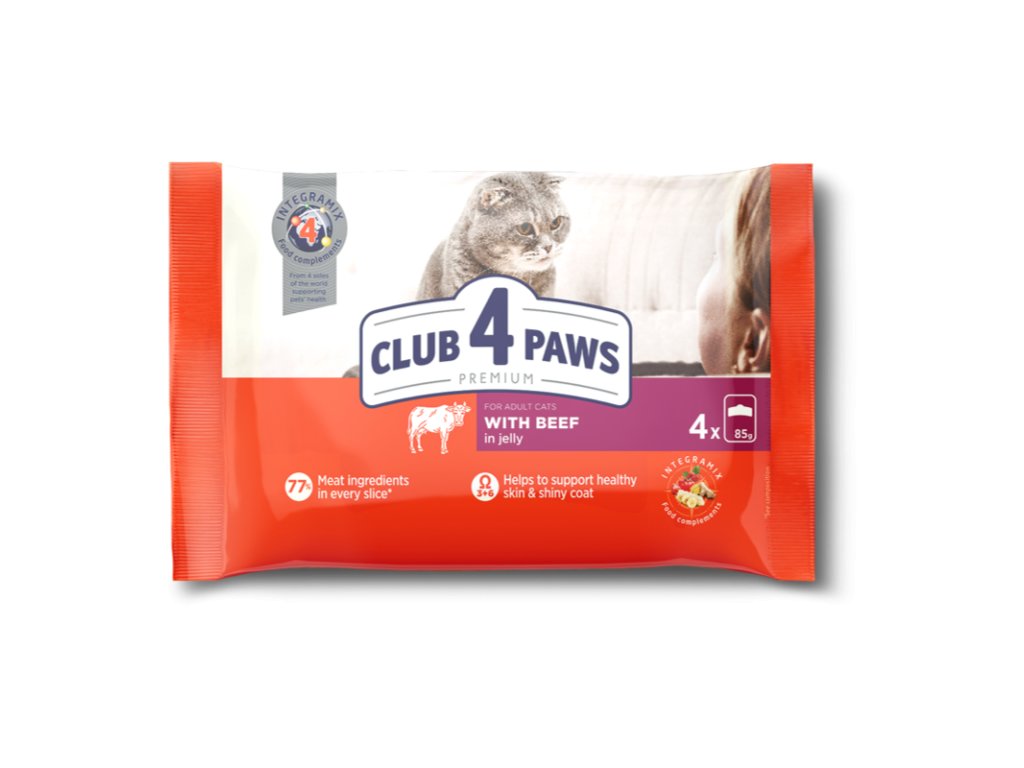 CLUB 4 PAWS Premium SET kapsičky s hovädzim mäsom 4x85g (9077)