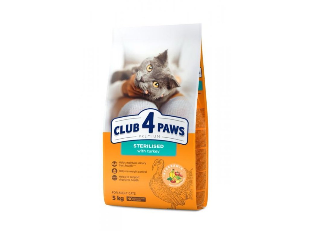 CLUB 4 PAWS Premium STERILISED s morčacím mäsom pre dospelé sterilizované mačky, 5 kg (4934)