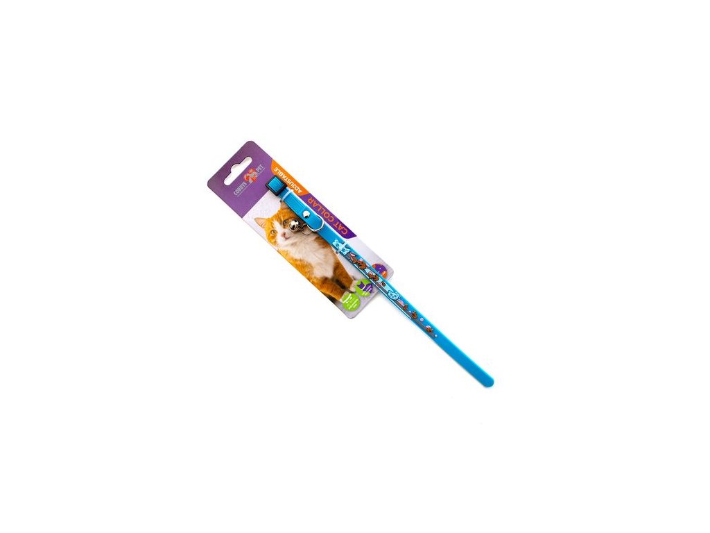 COBBYS PET Elastický obojok pre mačky s rolničkou 20-30cm/10mm modrý rybí dizajn