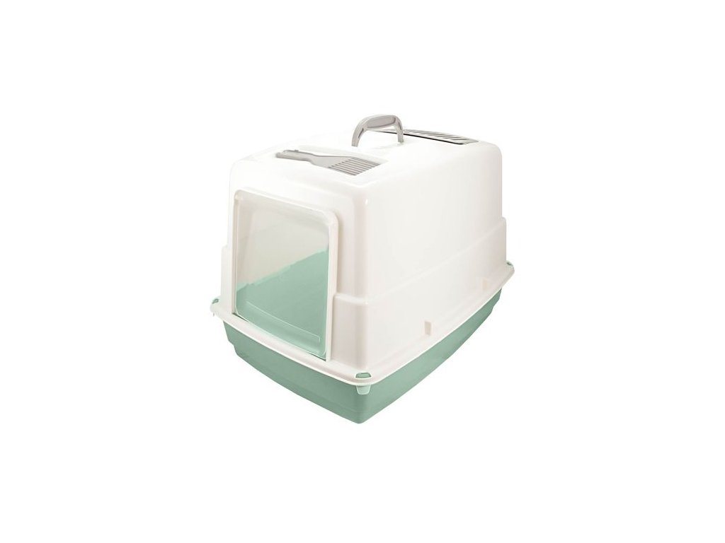 Toaleta pre mačky s plastovým krytom, dvierkami a filtrom pre pohodlie a hygienu. Uhlíkový filter zadržuje pachy. Rozmery: 56 x 39 x 38,5 cm.