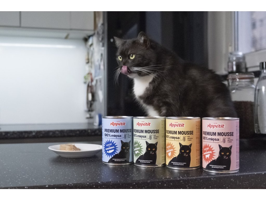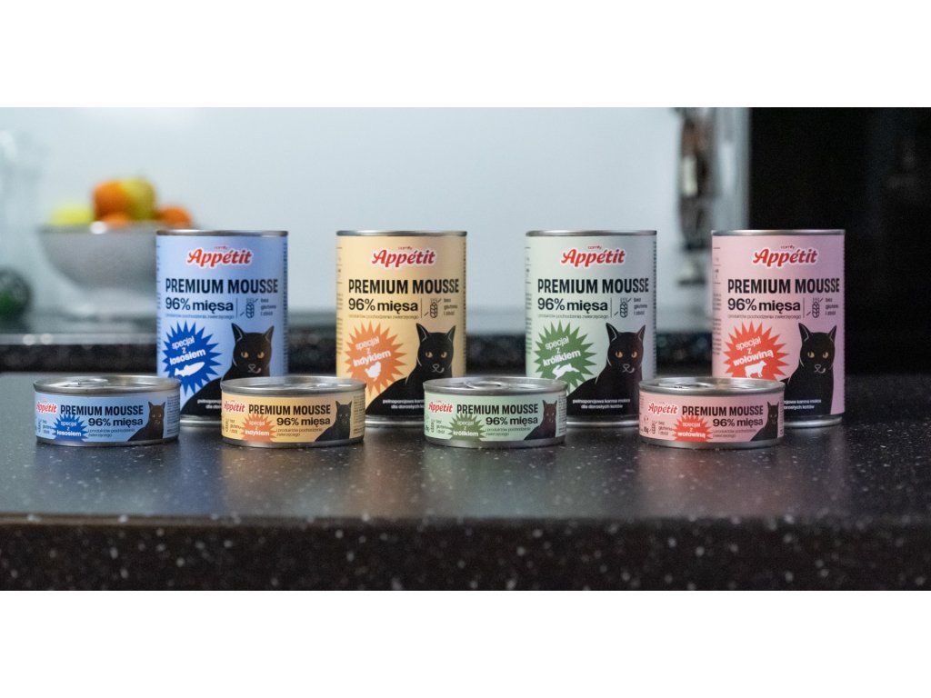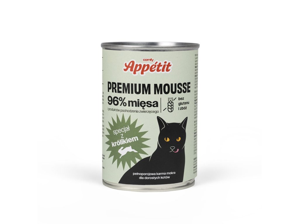 Comfy Appetit Premium Mousse je kompletná mäsová múčka navrhnutá tak, aby spĺňala denné nutričné potreby dospelých mačiek. Je založené na prírodných produktoch a obsahuje až 96 % mäsa, vnútorností a rýb.