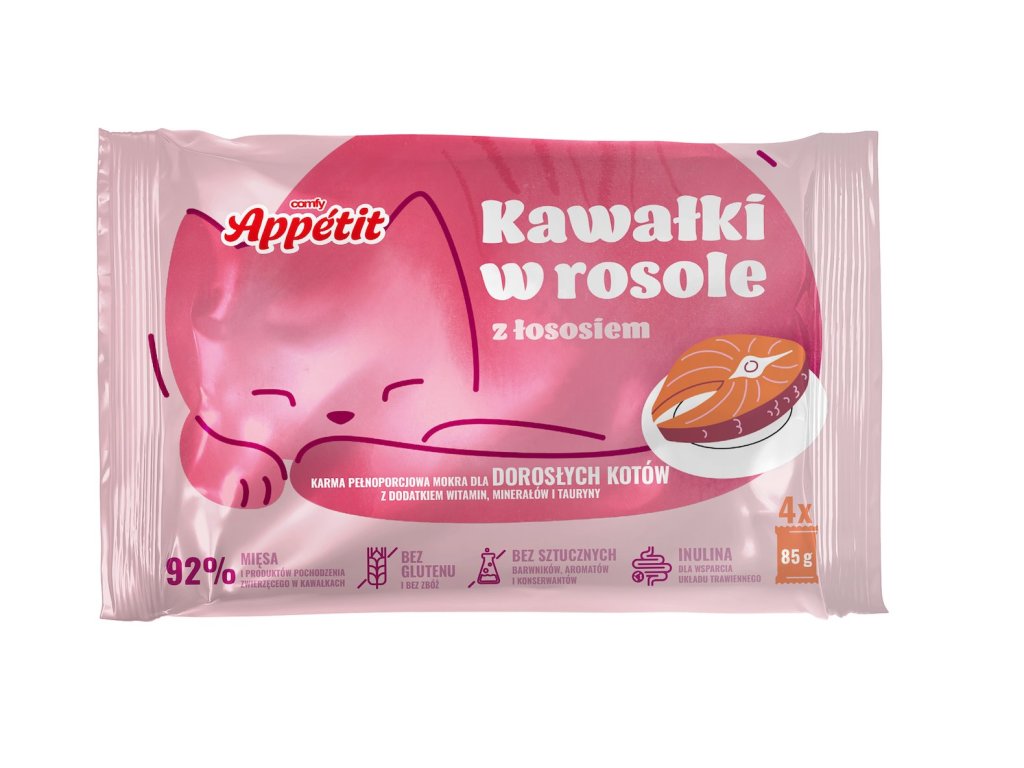 Comfy Appetit Kúsky vo vývare s lososom - vrecká pre mačky 340 g (4 x 85 g )