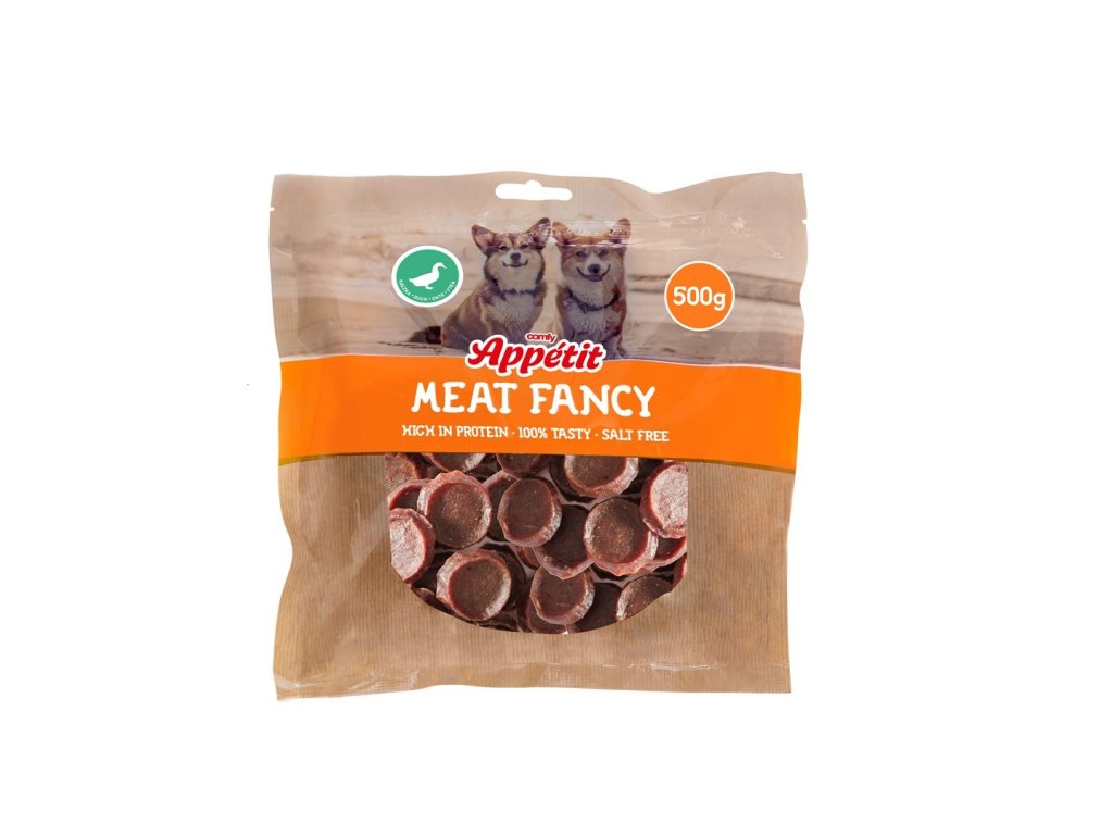 HAVE A PET MEAT FANCY je rad prírodných pochúťok s vysokým obsahom bielkovín bez pridaného cukru, soli a lepku. Mäkké kačacie sušienky okrúhleho tvaru sú chutným, ľahko stráviteľným snackom, ktorý je ideálny na odmeňovanie, výcvik a plnenie interaktívnych hračiek alebo čuchových podložiek.