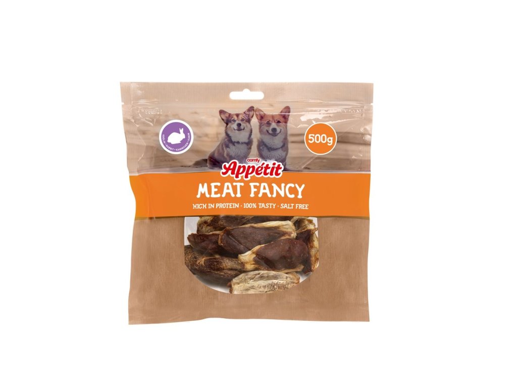 HAVE A PET MEAT FANCY je rad prírodných pochúťok pre psov, pripravených bez pridaného cukru, soli a lepku. Králičie ucho s králičím mäsom je jemná, chuťovo výrazná pochúťka na žuvanie, ideálna pre citlivých psov a psov, ktorí radi dlhšie pracujú ústami.