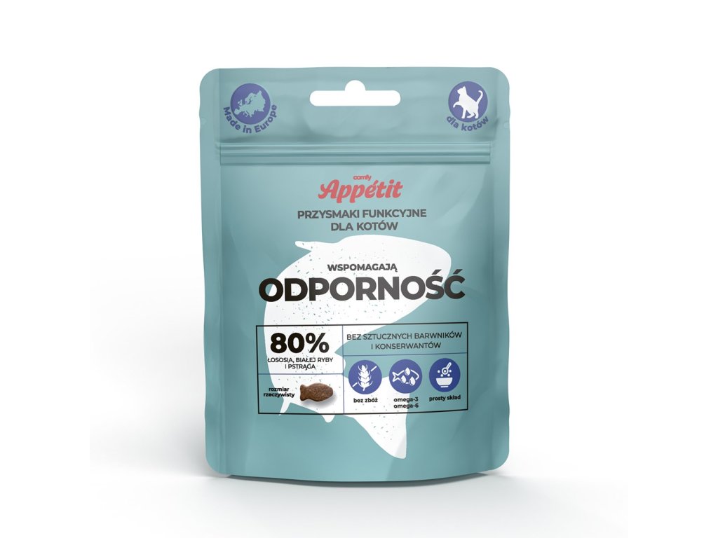 Bezobilné pochúťky Comfy Appetit Functional Treats sú radom vytvoreným s ohľadom na zdravie, energiu a každodenný komfort vašej mačky. Každý variant sú chrumkavé granule plné starostlivo vybraných zložiek, ktoré podporujú rôzne oblasti zdravia - od imunity až po lesklú srsť. Všetky sú bohaté na čerstvé mäso alebo ryby a neobsahujú obilniny, umelé farbivá ani konzervačné látky. Ideálne ako odmena, súčasť hry alebo jednohubka. Vyrobené v Európe.