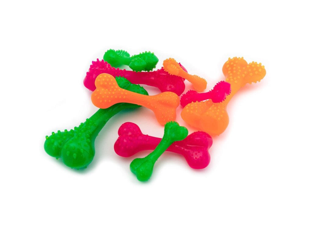 Hračka pre psov z netoxickej pevnej gumy. Veľkosť: 13 cm Rôzne farby - náhodný výber farieb.