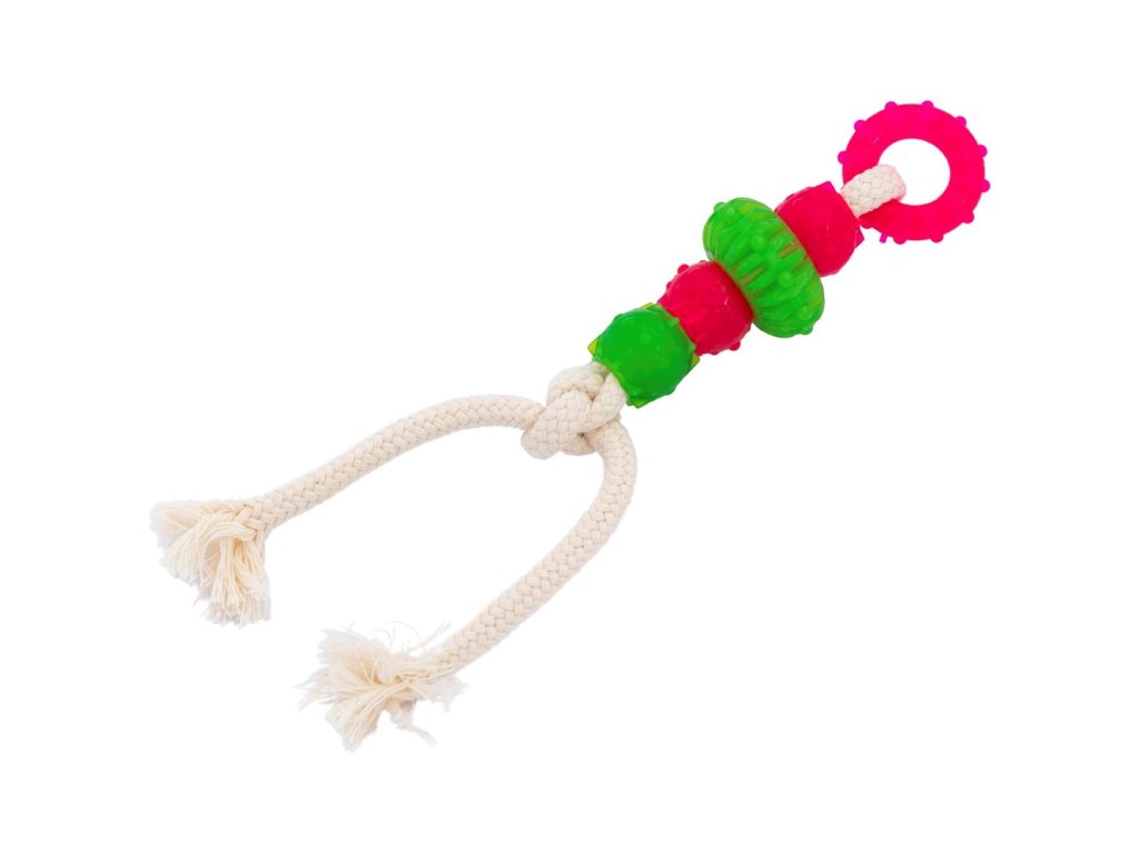 Kruhy z odolného TPR materiálu pre psy. Vhodné pre rôzne plemená. Nepúšťať k ohňu, nie sú pre deti. Používajte len pod dohľadom.