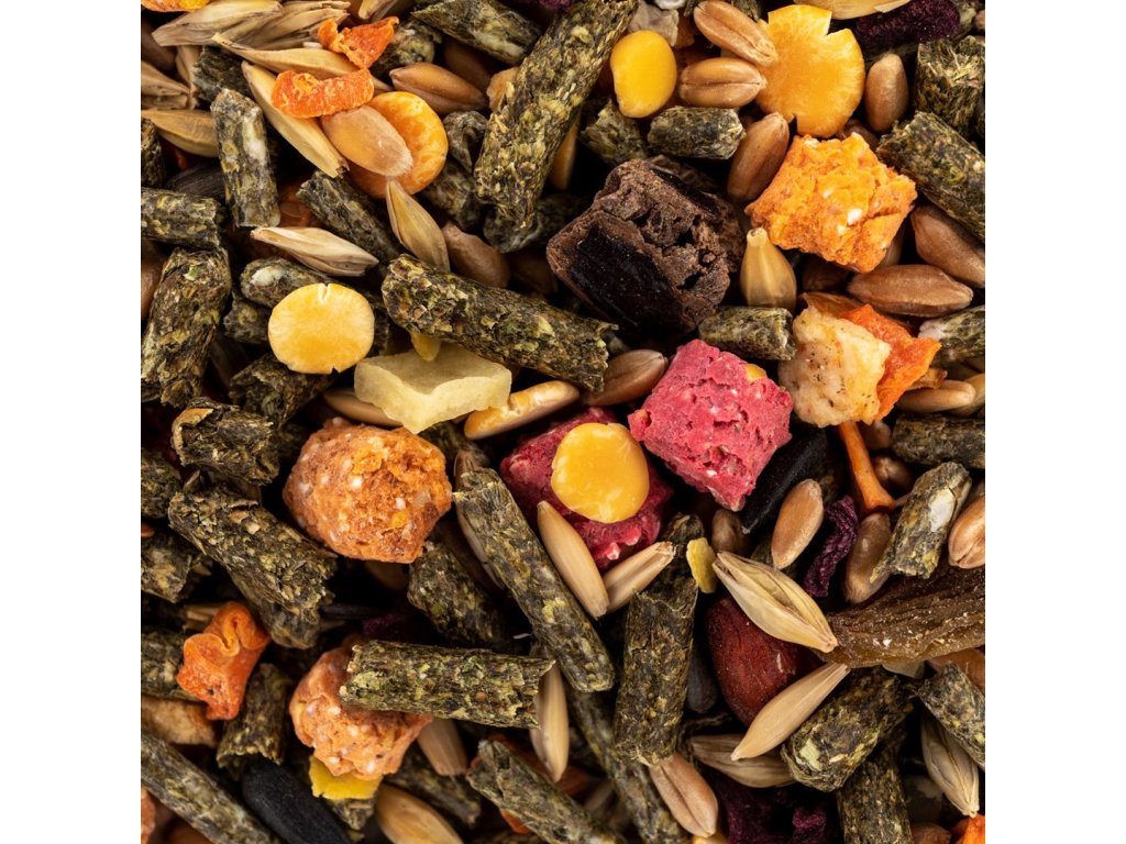 Kompletná kŕmna zmes pre malé hlodavce s orechmi, ovocím a zeleninou - chutná a výživná denná strava.