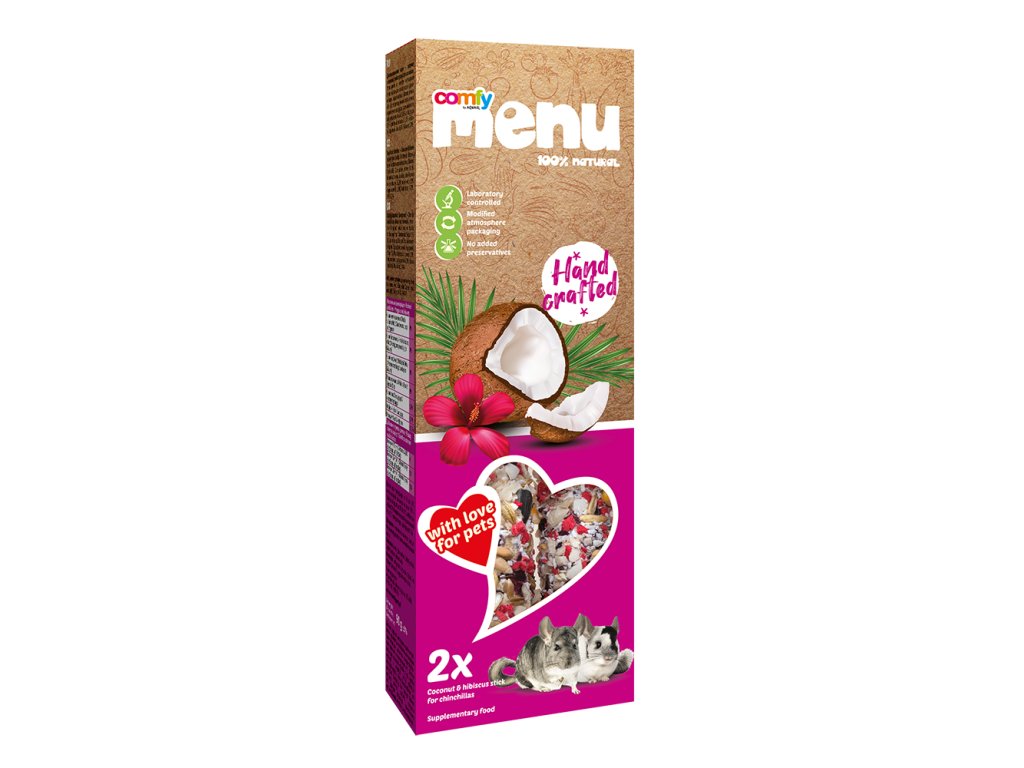 Comfy Menu Tyčinky pre Činčily Kokos Ibištek 90 g