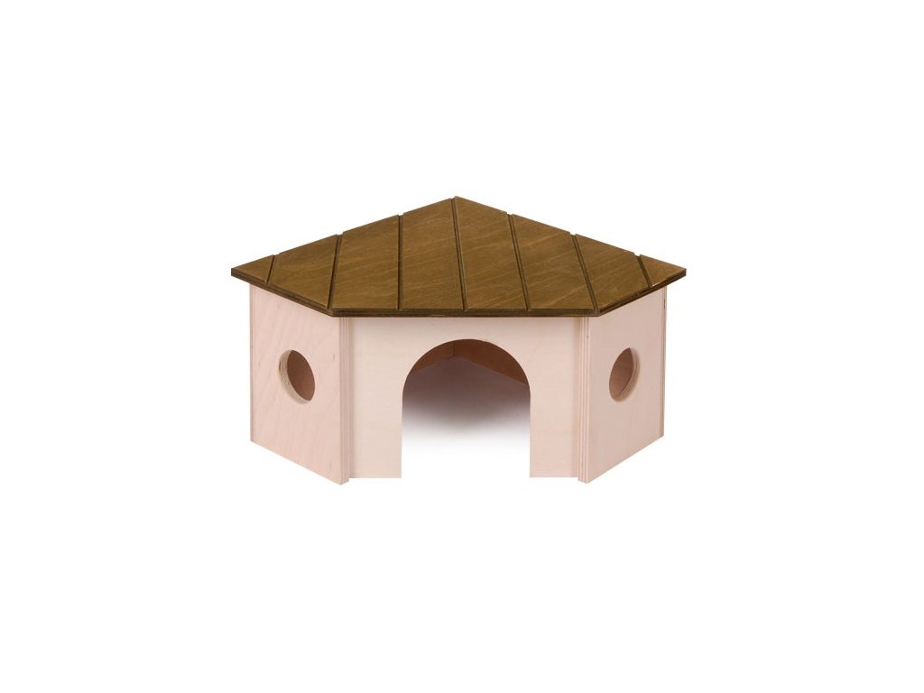 Odolný a estetický rohový domček je vyrobený z prírodného dreva. Poskytuje vynikajúci úkryt a pozorovateľňu pre škrečky, činčily, myši a potkany.