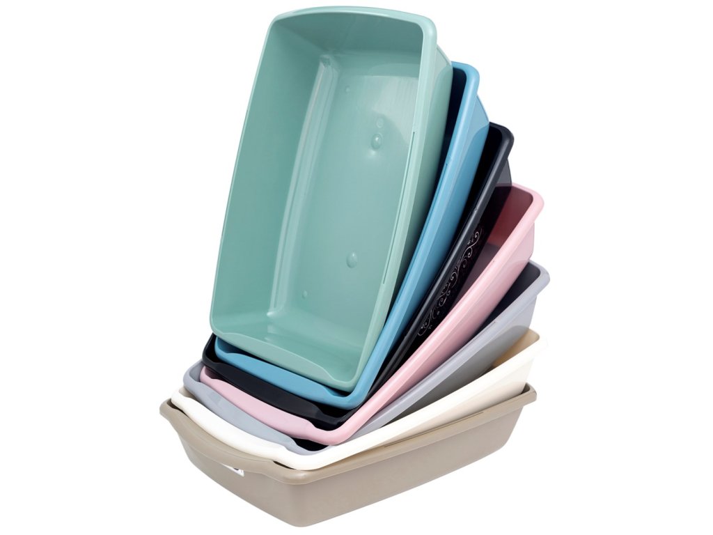Plastová kočičia toaleta s okrajem zabraňuje vypadávaniu podstielky. Jednoduchá údržba, vhodná pre všetky mačky a mačiatka.