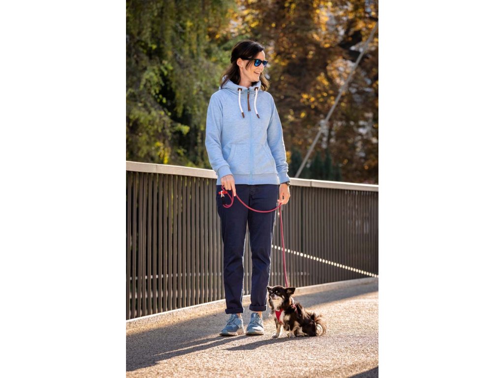 Ľahký, pohodlný postroj pre malých a stredne veľkých psov. Vodítko a postroj sa dajú pripnúť jednou rukou pomocou spony. Vysokopevný materiál spony, ktorý vydrží ťahové zaťaženie až do 100 kg. Táto spona eliminuje „cvakavý“ zvuk D-krúžkov. Výrazne zlepšená ergonómia postroju a optimalizované nosenie vďaka novému vzoru a novej veľkostnej stupnici.