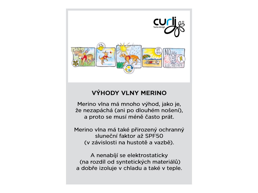 Merino vlna je prírodný produkt, ktorý je mimoriadne kvalitný. Získava sa z oviec merino a vyznačuje sa osobitnou jemnosťou a mäkkosťou. Je trvalo udržateľná a biologicky odbúrateľná. Zároveň poskytuje ochranu pred UV žiarením. Postroj je veľmi ľahký a dokonalé pohodlný pre vášho psa.