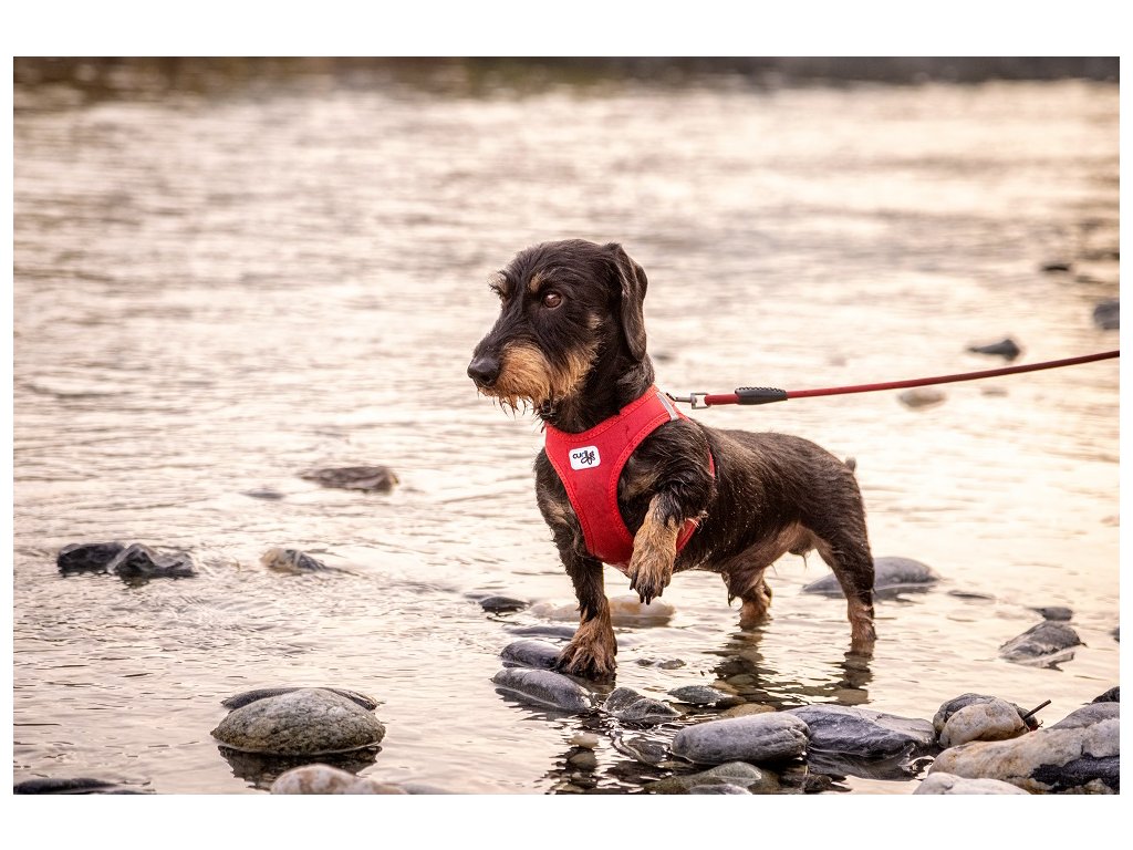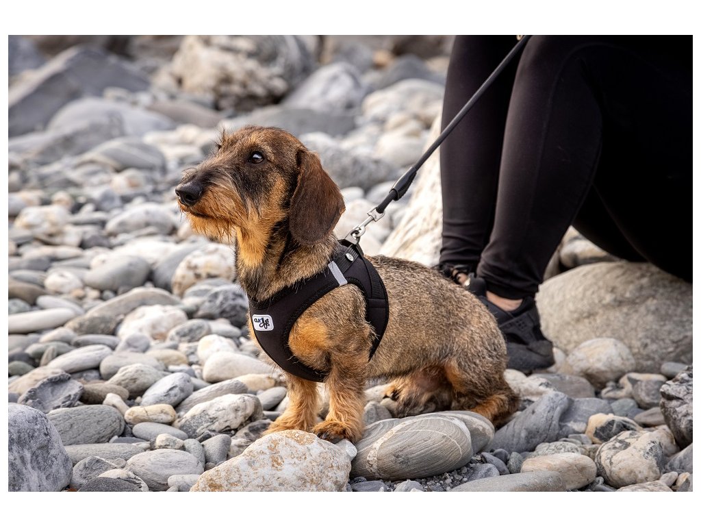 - Postroj vylepšený o praktickú sponu, vďaka ktorej sa vodítko a postroj dajú pripnúť jednou rukou