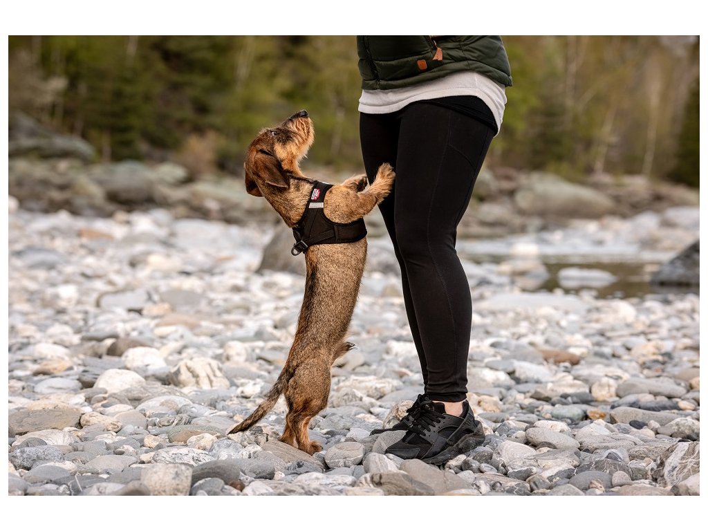 Postroj vhodný pre menších a stredne veľkých psov teraz vylepšený o praktickú sponu. Je odolný voči vetru a vode vďaka materiálu softshell, ktorý je podšitý ľahkou priedušnou sieťovinou Air-Mesh. Rýchle a jednoduché obliekanie. Nastaviteľná veľkosť pomocou suchého zipsu, aby sa tak postroj dokonale prispôsobil telu psa. Prekrížené nylonové popruhy zabezpečujú optimálne rozloženie napätia a chránia pred poranením krku. Polstrovaná pracka zabezpečuje, aby sa srsť nezachytávala ani nedráždila.