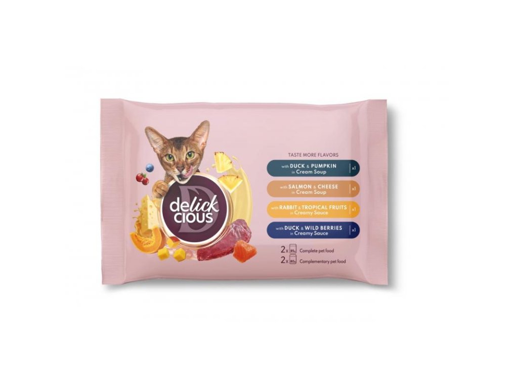 Otvorte svojmu mačičkovi novú delikátnu cestu chutí so setom Delickcious! Štyri chutné jedlá v jednom balení, ktoré doprajú vášmu pradiacemu miláčikovi skutočný gastronomický pôžitok. Set obsahuje plnohodnotné receptúry na každodenné kŕmenie aj lahodné doplnkové varianty na rozmaznávanie. Každý produkt Delickcious je chutným spojením zaujímavých ingrediencií, jemného mäsa a, samozrejme, fantastickej omáčky, ktorú mačky jednoducho milujú!