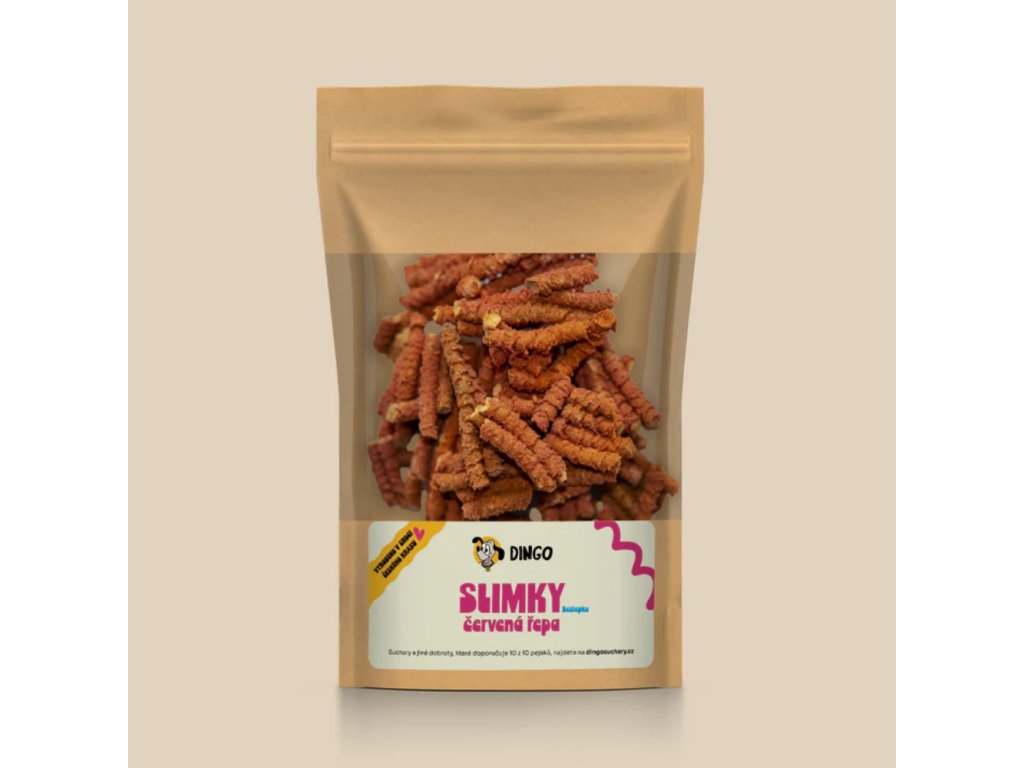 Zloženie: Cícerová a pšenová múka (pomaly lisovaná za studena) cvikla, jablčné výlisky a vaječná melanž.