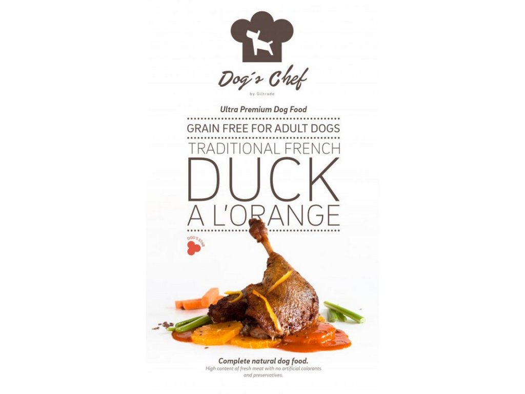 Tradičná francúzska kačka na pomarančoch, so sladkými zemiakmi, je skvelá chrumkavá voľba pre tých najnáročnejších psích stravníkov. Kačacie mäso obsahuje množstvo kvalitných bielkovín, ktoré sú nevyhnutné pre bunky, tkanivá, enzýmy aj hormóny. Pomáhajú pri regenerácii a raste svalovej hmoty. Pridaný pomaranč, za pomoci vysokého obsahu vitamínu C, podporuje imunitný systém a chráni bunky pred radikálmi, detoxikuje a má antiseptické účinky. Táto receptúra je obohatená aj o brusnice, ktoré sú výborným antioxidantom a blahodárne vplývajú na močové cesty. Kombinácia kačacieho mäsa a sladkého ovocia, sa vďaka svojej jedinečnej vôni a chuti, stáva pre psíky neodolateľnou. Pridané sú aj prebiotiká FOS a MOS, ktoré udržujú zdravý zažívací trakt a zlepšujú jeho obranný systém proti chorobám. Sú tak nepostrádateľnou zložkou pre zdravú črevnú mikroflóru.