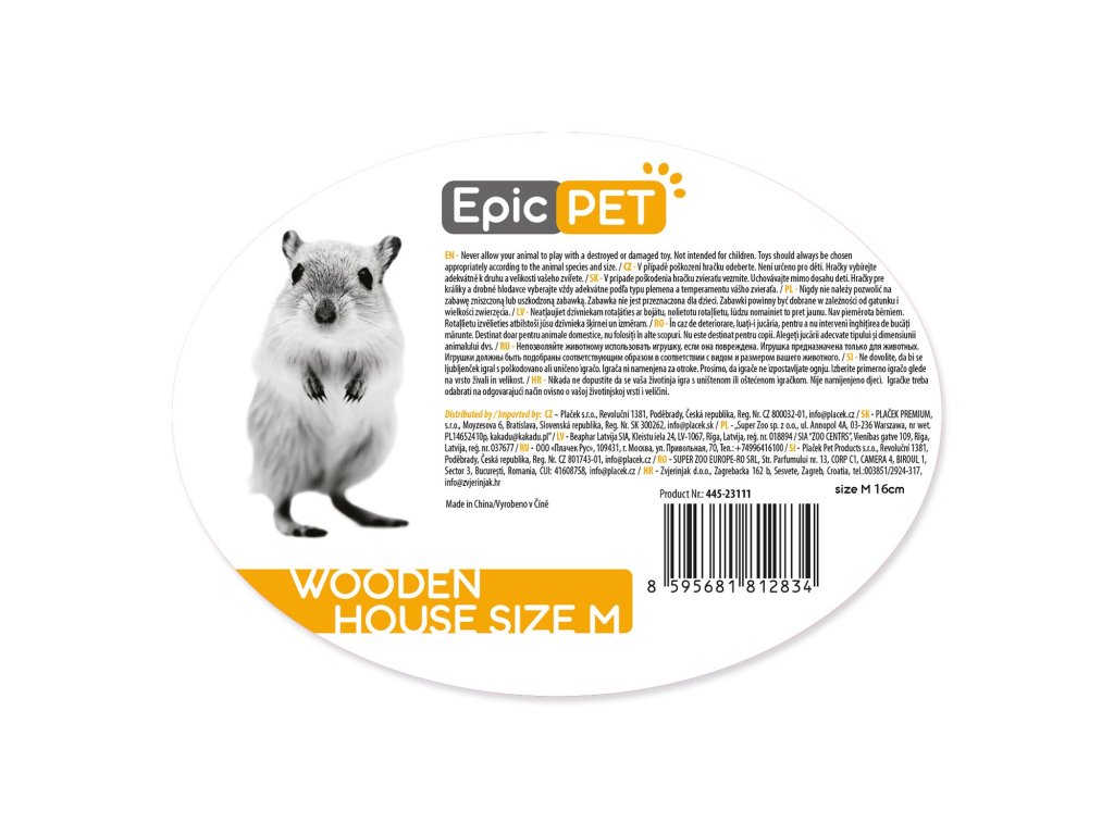Útulný domček pre hlodavcov z kvalitného dreva s kôrou. Ideálny úkryt a miesto na odpočinok pre vašich malých miláčikov.