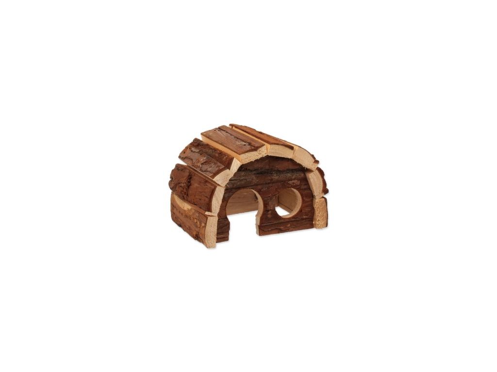 Ideálny polkruhový úkryt a odpočinok pre hlodavce, vyrobený z kvalitného dreva, s rozmermi 16,5 x 15 x 8 cm.