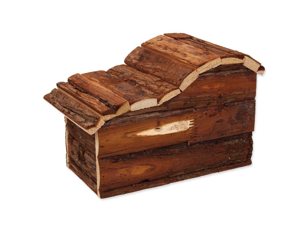 Ideálny úkryt a miesto na odpočinok pre hlodavce, vyrobený z kvalitného dreva s kôrou. Rozmery: 28 x 18 x 16 cm.