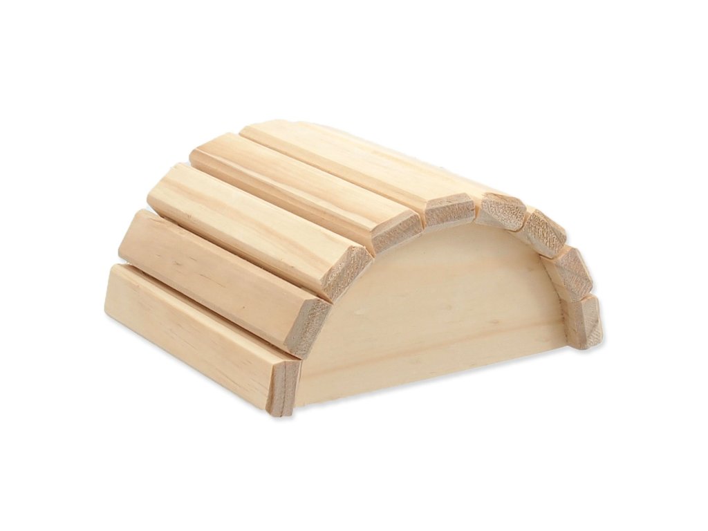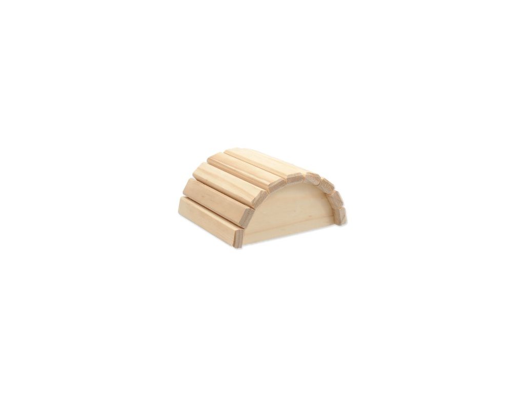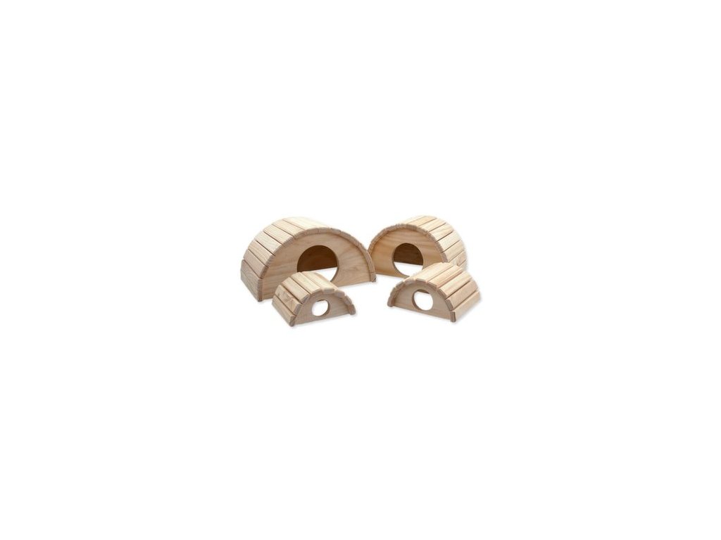 Polkruhový domček z kvalitného dreva pre drobné hlodavce, ideálny na úkryt a odpočinok. Rozmery: 31 x 20 x 15,5 cm.