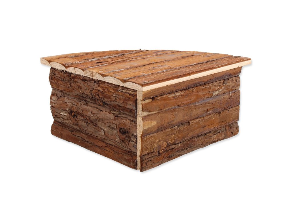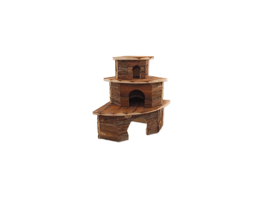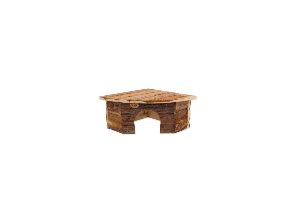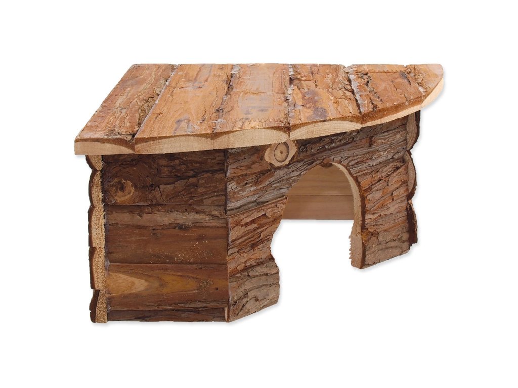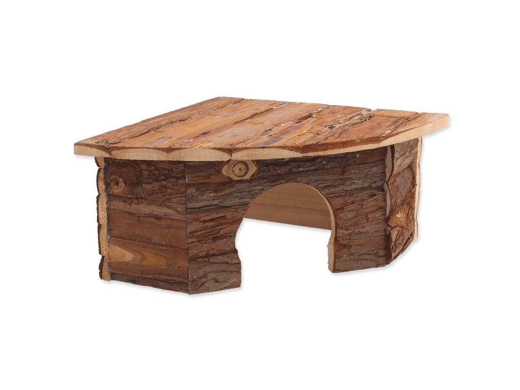 Domček Small Animals Rohový drevený s kôrou 30x30x16cm